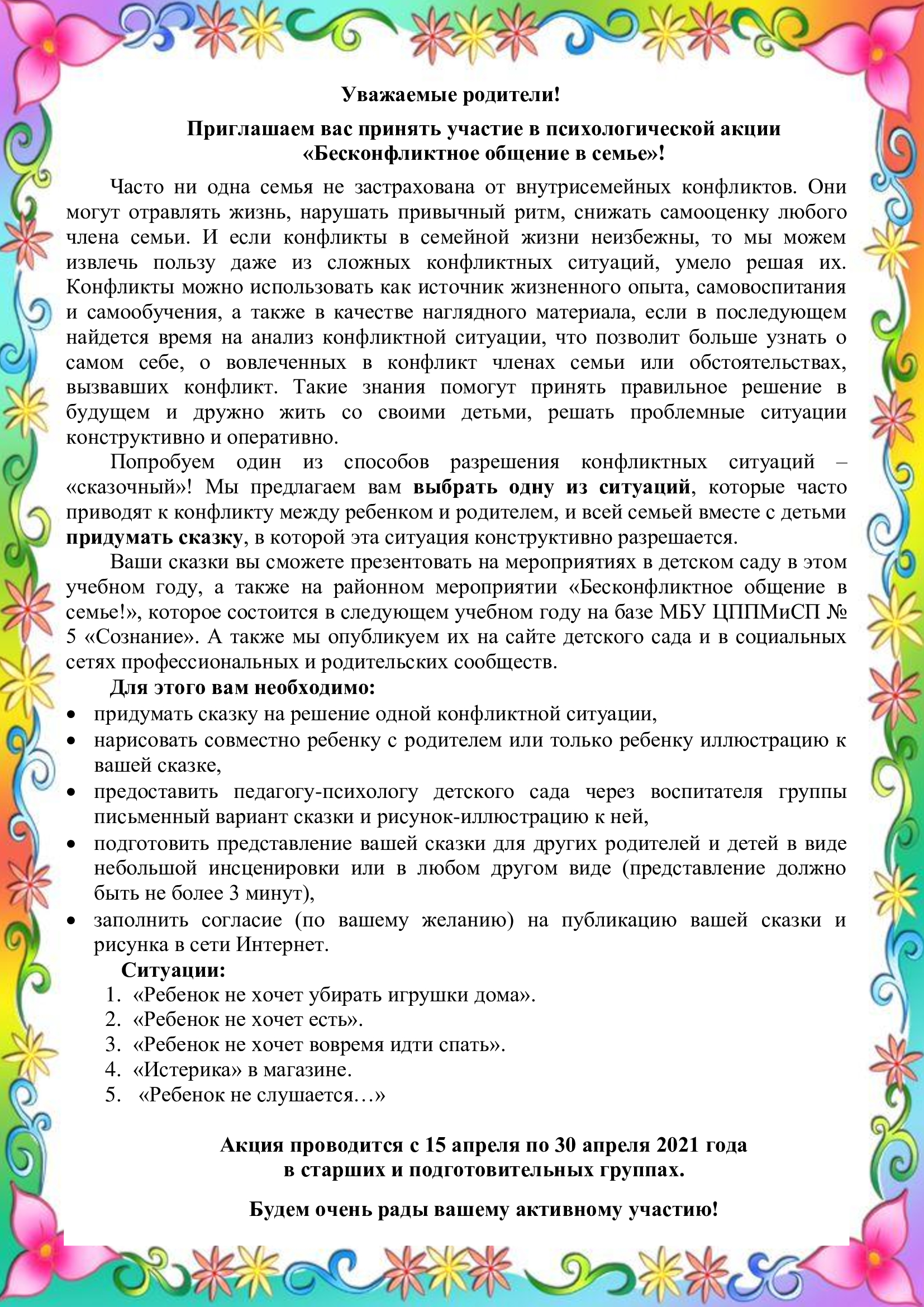 Участие детей ДОУ в психологической акции «Бесконфликтное общение в семье»