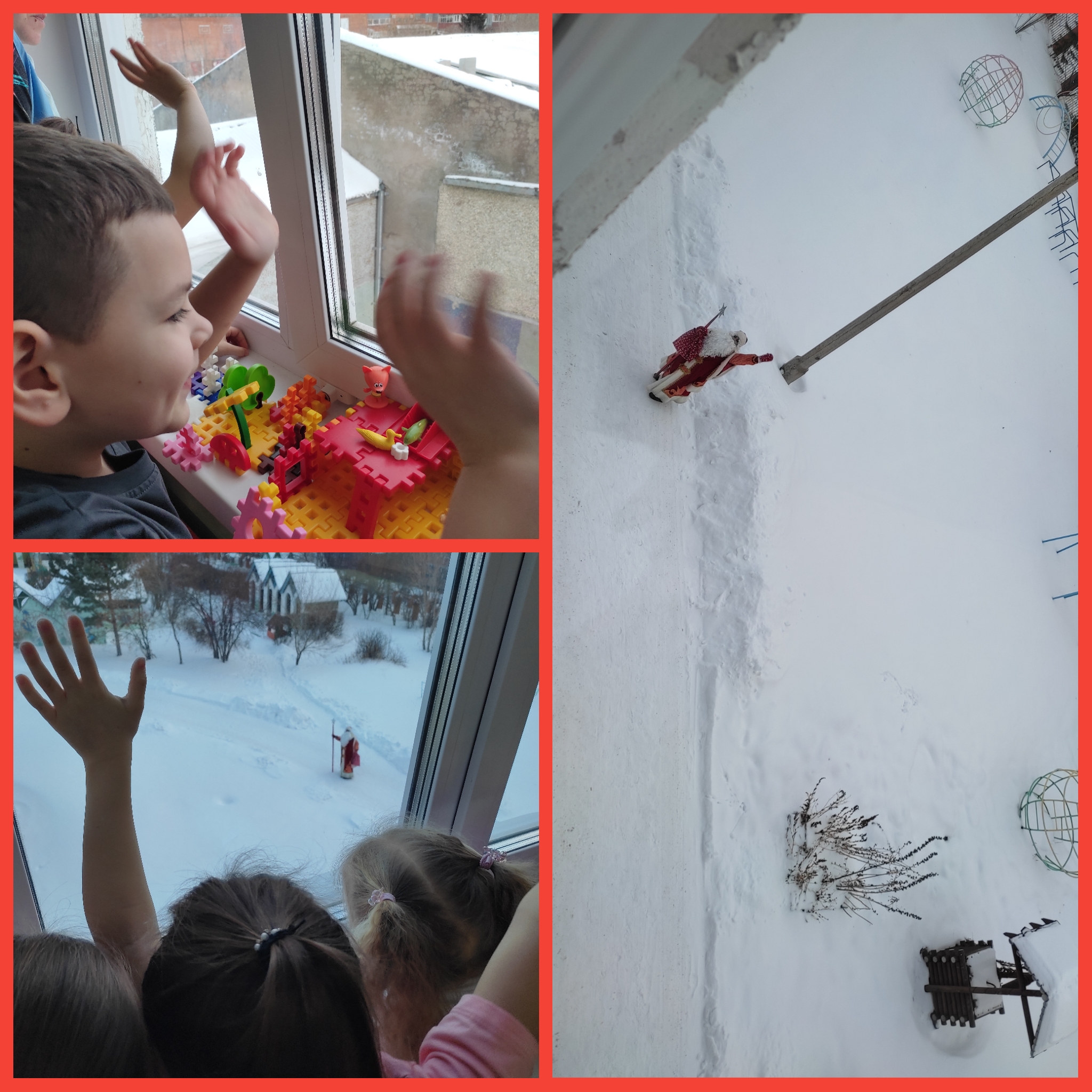 На прогулке: катаемся с горки, играем со снегом.